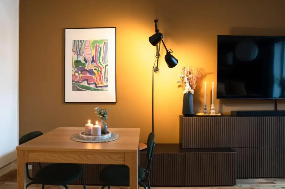 Weitere Informationen zu Guestly Homes - 3BR City CharmGuestly Homes - 1BR Scandinavian Charm bietet ein modernes und stilvolles Wohnzimmer sowie einen offenen Küchenbereich mit voll ausgestatteter Küche. Die Unterkunft verfügt über ein Schlafzimmer mit eigenem Bad und einer komfortablen Bettenausstattung. Gäste loben die Sauberkeit der Räumlichkeiten und die Ausstattung mit allem Nötigen für einen angenehmen Aufenthalt.